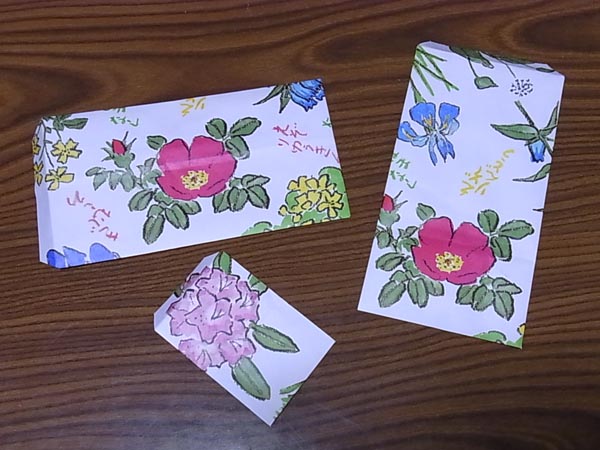 × [PR]上記の広告は3ヶ月以上新規記事投稿のないブログに表示されています。新しい記事を書く事で広告が消えます。 私はよく、買い物先でもらう紙袋や包装紙で、オリジナルの封筒を作ります。ときどき「どうやって作るの?」と聞かれることがあるので、作り方を紹介しますね。いつも適当に作っているので「教える」というようなことはできませんが、ざっくりとした作り方の紹介です。 袋中央の「はまなし」の絵を中心に、封筒を作っていくことにします。 本体の方まで薄く剥がれてしまうこともありますが、そのくらいは気にしなくて大丈夫。封筒にしてしまえば、内側は見えませんから。もし破れてしまっても、その部分を使わないように作っていけばOK。 封筒には規定の大きさがあります。最大で23.5cm×12cm、厚みは1cmまでで、総重量50g以内だと、80円切手を貼れば送ることができます。それ以上になると定形外郵便となり、料金が変わってきます。最低でも120円かかります。 小さすぎてもいけなくて、最小は14cm×9cmです。 合わさる部分は1cmくらいあれば充分です。1cm以上の部分が余分となります。今回は左側のあわせに余分ができました。折り込んでいるのが余分ですが、この写真だとわかりにくいですかね? すみません。 左右両側に余分ができることもあります。余分は切り落とします。 広げると、下の写真のようになります。 三角の切れ込みの頂点を起点に、両端を切り落とします。 このとき、折り目に沿ってまっすぐ切るのではなく、少し内側に、斜めになるように切り落とすのがポイントです。こうしておくと、封筒のフタの部分を折り返すときに、折りやすいですよ。 両端を斜めに切り落とし、三角の切れ込みの頂点を起点に、斜めに両端を切り落とします。底のときと、まったく同じ作業ですね。 あとはのり付けをすれば、封筒のできあがり。のり付けの際、うっかり封筒のフタまで閉じてしまわないように。中身が入れられなくなりますよ! このようにギザギザを残すのも、ポイントになってかわいいと思いませんか? 同じ紙を使っても、レイアウトの仕方で表情が変わってきます。これも、封筒作りの楽しみですね。 残りの紙で、封筒をもうひとつと、ポチ袋も作りました。もうひとつの封筒は、横長にしてみました。封筒の表情、変わるでしょう? これを郵便として出すときは、宛先を別紙に書いて、貼りつけています。柄に白い部分が大きくあれば、直接書いてもいいのですが、今回のように全面に絵がある場合は、別紙を貼ったほうがいいでしょう。宛先がどこに書いてあるのかわからないと、届かないおそれがありますから。切手を貼る場所も、絵の中に埋もれてしまわないよう気をつけて。 ちなみに私が宛先を貼りつける場所は、封筒の裏側です。宛名を貼りつけた時点で、こちらが「表」になるのかな? なんにしろ、せっかく選んだ絵柄が、宛名で隠れてしまうのはイヤですよね~。 封筒作りの参考になりましたでしょうか? 基本的にはこんな感じです。あとは使う紙によって、創意工夫を楽しんでくださいね~。 PR