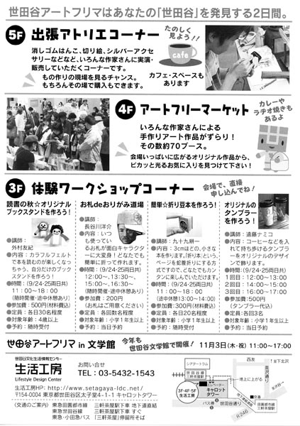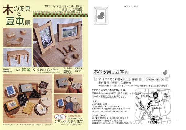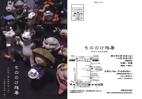 まずはこちら。 豆本作家であり、妖怪人形作家でもある茶柱立太さんの展示「もののけ残暑」。今月10~19日、東中野の「ビタミンTee・アートギャラリーにて。火曜定休で、12~19時まで。最終日は17時まで。 かわいい妖怪たちをお楽しみください。 続いては「木の家具と豆本展」。こちらにも茶柱さん、参加しています。そして五十嵐彪太さん、葉原あきよさん、武田若千さん、武田佳夕さんの豆本が見られます。木の家具と豆本の組み合わせ、なかなかいいんじゃないでしょうか? 木の小物&豆本のがちゃぽん(1回100円)もあるそうです。売り切れる前に行かないと! こちらは川越の「小江戸蔵里」で、今月23~25日。23日は屋外展示のため、雨天の場合お休みで、24・25日は雨天屋内展示だそうです。10~16時。 最後はおなじみの「世田谷アートフリマ」です。手作り品のフリーマーケット。いろんなものが並ぶので、豆本もあるかもしれません。 とりあえず私は、ワークショップコーナーで、折り豆本教室をやります。参加費300円で、小学校1年生から作れます。保護者同伴であれば、小学生以下のお子様もどうぞ。 世田谷アートフリマは今月24・25日、11~18時です。豆本ワークショップは、13時ごろ、ちょっと休憩をいただきます。それ以外はおりますので、遊びに来てくださーい。 |