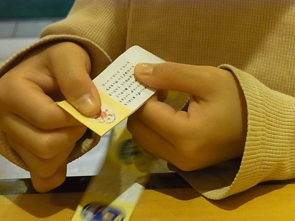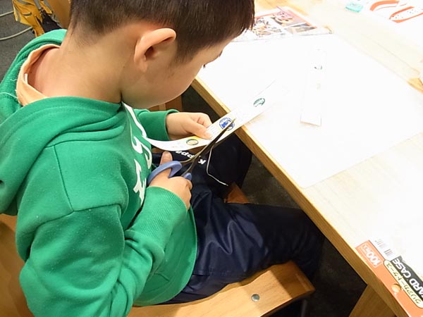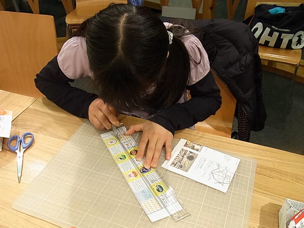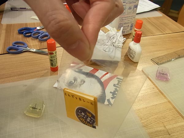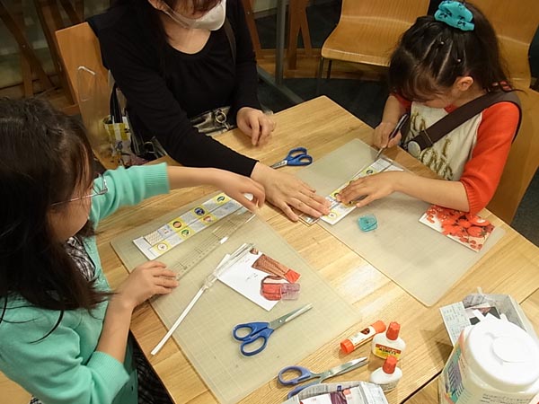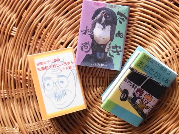 初日と違って、朝からいい天気。これは忙しくなるぞー、と思ったのですが……私のブースのお客さんは、前日と同じくらいでした。……これは、私の失敗のせいでもあります。 材料が17時前に尽きてしまいました! 参加できなかったみなさん、本当にごめんなさい! こちらの参加者さんは姉妹。お母さんもサポーターとして参戦! ふたりとも、きれいな豆本が作れました。 こちらの子も、真剣な眼差し! 所要時間はだいたい15~25分ですが、低学年の子の中には、ハサミで用紙を切ったところで集中力が切れ、折っていく段階ではかなり雑になってしまう子が何人か見られました。 手直しすると「自分で作った」という感じが薄れてしまいますし、プライドが傷つく子もいます。なので、合間合間に「今、何年生?」とか、「工作は得意?」などの質問をして、ガス抜きをすることが必要だとわかりました。 また、褒めすぎるのもよくないようです。低学年の子に多く見られた傾向ですが、ハサミを使っているときに「おっ、うまいね! すごくきれいに切れてる!」という具合に褒めると、どうも張り切りすぎてしまうようです。「いいところを見せよう!」と思うのか、ハサミのスピードが上がり、それまでまっすぐ切れていたのに曲がってきてしまう子が、何人かいました。 なので、作業中はあまり褒めず、「うん、いいよー」くらいに留めておくことにしました。作業が終わってから褒めると、集中力が途切れることを少し防止することもできるようです。 うーん、ワークショップやると、学べるなー。 前の日記にも書いたことですが、世田谷233は、世田谷アートフリマで中心になって動いているボックス・ギャラリーです。このバナナシールは、そこのオリジナル。 「このシールはね、どんなに八百屋さんを探して回っても、ぜったいに見つけることができないんだよ。ここでしか手に入らないシールだよー」と言うと、子どもの顔がパァッと嬉しそうに輝きます。レア感が嬉しいのでしょう。 ウソは言ってませんが、このシール、「別企画の余り物」という言い方もできたりします。 ……まあ、ものは言いようってことで。 前日のお客さんから学んだことですが、ビニールケースにカッターでチャチャッと穴を開け、「はい、ミニミニ手提げ袋」と言って渡してみました。これが子どもにけっこうウケがよく、穴を指先でつまんで、スキップして帰る子もいました。10秒足らずの細工で、こんなに喜んでもらえるとは! ホント、ワークショップをやると、勉強になります。 近日、ポラン書房にも納品します。 ポラン書房は、こちらです。 http://www5d.biglobe.ne.jp/~polanet/ PR 今日はアートフリマ初日。昨晩は3時近くまで準備をしていたので、ちょっと眠かったです。 家を出るとき、雨は降っていませんでしたが、電車に乗ってしばらくしたら土砂降り……。「お客さん、来るんだろうか?」と不安を抱えつつ、三軒茶屋・キャロットタワーへ。 一応、豆本の販売もしてみた。 さて、ワークショップ。フタを開けてみると、お客さん、来てくれました! 今日は全部で22人。子どもも多く、がんばって作っていました。 「切る」という作業よりも、「折る」という作業のほうが難しいようです。これは、子どもに限ったことではありません。 蛇腹折りは、慣れないと、けっこうズレが出てきます。なので今回は「大きく折って、じょじょに小さく」という作戦をとってみました。帯状の用紙を、まず半分に折り、四分の一に折り、八分の一に折り……という具合に。なるべく誤差を少なくできるように。 お客さんのひとりがクリエイティブな方で、この袋にカッターで穴を開け、ミニミニ手提げ袋に! うーん、写真じゃちょっとわかりにくいけれど、けっこうかわいかったです。ナイス・アイディア! 豆本もちょっと売れまして、それは嬉しいのですが、やはりひとりでは手が足らないなー、という感じです。 明日は今日よりずっとお客さんが増えるそうなので、がんばらねば! 今回はワークショップの内容を新しくしたので、ちょっとキンチョーしています。 今回作る豆本はこちら。 ワークショップだけでなく、販売も少々。新作もあります。 コルクン族がお菓子の家を作るお話。折り本形式の豆本です。 「別館ポラン書房」シリーズの第2巻『たぬき和尚』。こちらはドールハウスサイズ。 「なんで2巻が今ごろ?」という疑問を抱く方も多いでしょう。まあ、なんと言いますか……早い話が怠けてたんですね(汗)。 カバーのデザインがまだ決まっていなくて、写真は仮のデザイン。これから直して、明日になんとか間に合うようにしまーす! みなさん、よかったら遊びに来てください! 今回のワークショップで作る豆本は、こんな感じです。 より低学年の子も参加できるようにと思い、帯状の中身を蛇腹に折って作る形式にしました。 テキストはすぐに用意できましたが、問題なのは教え方。自分にとってカンタンにできることでも、他の人