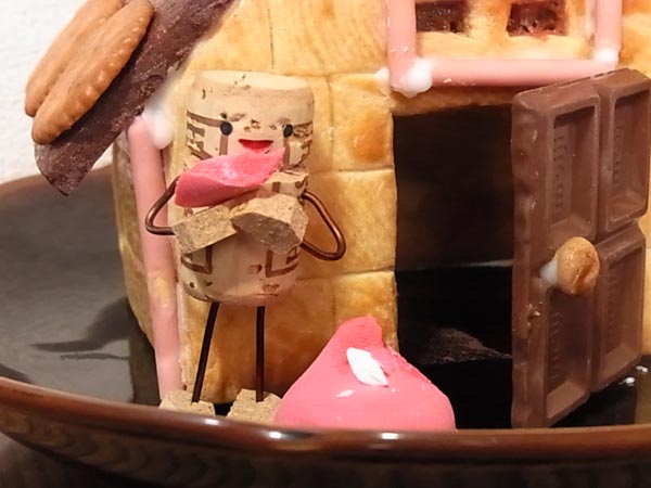 × [PR]上記の広告は3ヶ月以上新規記事投稿のないブログに表示されています。新しい記事を書く事で広告が消えます。 今回は50円切手シートで豆本を作っていきます。チラシは2枚、使います。 1.チラシ中央を切り取る 後は、中央の黄色い部分を切り抜きます。水色の部分も後で使うので、切り目はなるべくはみ出さないようにしてください。 2.本体用の絵を切る 高さは26mmにするとちょうどいいでしょう。 3.折る 絵を中央に据えて、幅23mmで折りましょう。 切る位置ですが、左側は、折り目のやや内側を。右側は折り目から5mmの幅を取って。 4.白黒の絵を切り抜く 私は左下のピーターラビットと、右上の「あひるのジマイマ」を切り抜きました。好みで選んでくださってけっこうです。ただし、まだ切り抜いていない、2枚目のチラシから選ぶときは要注意。先に切り抜いてしまうと、後から表紙を作れなくなってしまうことがあります。 切り抜く大きさは、縦26mm、横23mmです。 5.パーツを並べる 足りないパーツがないか、よく確認してくださいね。 6.パーツを貼り合わせる このときに、山折り、谷折りが逆になっているパーツがあったら、直してください。 折り目はきつめに、しっかりと。 7.背をのり付けする 「背」というより、内側にボンドが入り込むくらいに塗ってしまってかまいません。ここで言う「内側」は、あくまで裏面のこと。表面にボンドが付くと、汚れたり、最悪開かなくなったりしますので、ご注意を。 これで本体はできあがり。 これから表紙を作っていきます。 今回は、チラシのみを使った豆本作りですので、表紙もチラシで作ります。ですが、工夫して、別の材料で作ってもいいと思います。 8.表紙用の絵を切り抜く ピーターを中心に、幅35mm、高さ28mmで。 端から5mmの幅を取り、折り目をつけます(両側とも)。 左側は、さらに、端から3mmの幅を取り、折り目をつけます。 9.裏表紙用のパーツを切り抜く 水色部分のピーターラビットの、顔の部分を切り抜きます。 耳は先まで入るように、ヒゲも先まで入るようにして、高さ28mmで切り抜きます。左側は赤い部分が入らないように、ギリギリのところで切り落としてください。 右端から25mmのところで折り目をつけます。 10.折り返し用パーツの切り抜き 水色の部分ならどこでもいいでです。 28mm×22mmのパーツを切り抜いてください。 11.表紙パーツの貼り合わせ 10で切り抜いたパーツは、8のパーツの右側に貼ります。 両端の裏面にボンドを塗り、折りこんで接着します。 これで表紙はできあがりです。 12.本体と表紙のドッキング このとき、本体と表紙が、上下逆さまにならないように確認してください。 表紙は本体より、少し大きめに作ってありますから、本体の背をくっつけるときには、上下に少しゆとりがあるようにします。 本体の外側にボンドを塗り、表紙をかぶせて、くっつけます。 反対側も同様に。 13.完成! ボンドが乾けば、ピーターラビット・チラシ豆本の完成です! アレンジしたりして、かわいい豆本を作ってくださいねー。 PR コルクン族の豆本を作るのに必要となり、お菓子の家、作ってみました。 昨年のクリスマス・シーズンに、無印良品で「お菓子の家キット」が売られていました。生地を作って、型紙に合わせて切り、アイシングで接着して作るというもの。 このときすでに、お菓子の家を題材とした豆本を考えていたので、買っておきました。しかも、クリスマスが過ぎたあと、半額セールになっていたものを(笑)。 設計図通りには作らず、ちょっとアレンジ。 ドアは板チョコ、角にはイチゴポッキーを。窓はくり抜いて、オーブンで焼くときにくだいたアメを入れておきました。こうすると、ガラスがはまっているみたいになるんですよ。うまく作れば、ステンドグラスみたいにすることもできるようです。 煙突はロールクッキー。 例えばサンタさん。もちろん、これも食べられます。 いや、お菓子だから、食べていいんだけど……なんと言うか……。 ……まあ、いいや。 この後、もちろん、家のほうもコルクンたちに食べられてしまいました。