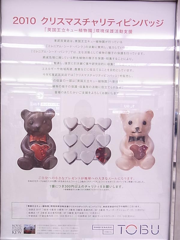 採られずに枝に下がったままの柿の実は、そのうちにとろとろに発酵して柿酒に。柿酒目当てに、鳥たちが集まってきます。 一番の古株は、すずめのロクさん。柿酒をイキな飲み方を、口やかましく鳥たちに教えます。 落語風に書いたお話で、ナレーションは落語家の五明樓玉の輔師匠。 どうぞ、お楽しみください。 ストーリーゲートはこちら。 https://www.so-net.ne.jp/storygate/ PR 「クリスマスプレザーブ」とは、ドライフルーツを甘く漬け込んだジャムのこと。イギリスではこれを利用して「ミンスパイ」を作る習慣があるのだとか。クリスマスの伝統的なお菓子だそうです。 白い瓶がかわいいいです。 年号が入っていて、毎年色が違うので、集めています。今年は緑でした。 いつもどこで売っているかと、あちこち探し回るのですが、今回は渋谷の成城石井で買うことができました。 今、コラボ企画で、絵柄がなんと『キャッツ』なのです! 絵柄は全部で7種。 これは「マンカストラップ」。 あとでもうひとつ買って、そちらには「スキンブルシャンクス」が入っていました。 『キャッツ』、観たことないんですけどね(汗) いつまでこの絵柄のひょうちゃんが販売されているのかは知らないけれど、ひょうちゃんファンは、今のうちに買っとかないと! 『キャッツ』ファンも! 詳しくはこちら。 http:// 今年も、ユーキャンの通信講座「立原えりかの童話塾」機関誌「ヒースランド」が発行されました。年に1度の発行で、毎号、お話を載せていただいています。 絵は安田隆浩さん。表紙だけでなく、中の挿絵も担当されています。 今回、私のお話は『本棚小人の話——リタの本棚』。前号に『本棚小人の話——ケイの本棚』というお話を書きましたので、その続編です。 ひとつの本棚に、ひとりの本棚小人が住んでいて、収められる本と、本棚の持ち主を見守っている、という言い伝えのある街を舞台にしたお話です。 この小人は、とくに魔法が使えるわけでもなく、本当に見守っているだけの存在です。基本的に人間には見えないのですが、気配は感じられる存在。探している本の背表紙をちょっとだけ出っ張らしておいたりとか、耳許でそっとささやいたりとか、その程度のことしかできません。 今回は、安田さんの絵がつきました! 絵がつくと、やっぱり嬉しいです。 安田さん、ありがとうございます! 今日はテレビを買いに、池袋まで行ってきました。エコポイント終了前の、駆け込み購入ってやつです。 「会計まで1時間待ち」という話も聞いていたので、平日の今日、開店と同時にお店へ。 相方が事前に購入する機種を調べておいてくれたので、わりとスムーズに会計までたどり着きました。この時期テレビ買い替えをご検討中の方、開店と同時がオススメです。 機種にもよるとおもうのですが、うちの場合、テレビが届くのは来月11日です。メーカーにも在庫がない状態だとか。 さほど寒くなく、気持ちよかったです。 高額な買い物をしたので、節約モード。 お昼は自宅で作ってきたサンドイッチ。 コロッケサンド、卵サンド、レバーペーストサンドです。スタバのコーヒーといっしょに。タンブラー持参なので、コーヒーは20円引きです。 お昼を食べたら、今度は東武デパートへ。 今日から7階で「ハリー・ポッター グッズコレクション」が開催。ハリポタグッズが、いろいろ販売されています。 とくに買いたい物があるわけではないのですが、ある金額以上の買い物をすると、組み分け帽がかぶれるというイベントがあるというので、見に行ってきました。 この子はかなり緊張気味で、組み分け帽をかぶっていました。 「どの寮がいいと思う?」と尋ねるイベント係のお兄さん。 「グリフィンドール」と男の子。 「やっぱり、ハリーといっしょの寮がいいよね~。さあ、組み分け帽の答えはどうかな?」 目を閉じたり、耳をふさいだりと、落ち着かない男の子。 悩んだ末の組み分け帽の答えは……。 思わず笑顔とピースが飛び出す男の子。 いやー、よかったねー。 しばらくようすを見ていたのですが、グリフィンドールを希望する人が、やはり多いようです。でも「スリザリンがいい」という人もポツポツ。 必ずしも希望の寮を告げられるわけでもないようです。 せっかく来たので「マスコットコレクション」という小箱を買ってみました。中に5種類のストラップうち、ひとつが入っているとかで、なにが当たるかは開けてからのお楽しみ。 残念なことに「火消しライター」でした。 個人的には、5種類の中ランキング最下位のもの……。 「もう1度!」とも思いましたが、ひとつ500円もするので、諦めました。テレビ買った後ですし……。 ひとつ300円から。チャリティなので、300円より多く出してもいいんですよ。 クマはひとつひとつ、微妙に表情が違ったりしているので、慎重に選びました。 西武デパートの屋上で、ケーキを食べました。ジョトーのモンブランと、フルーツのロールケーキ。 ホッとします。