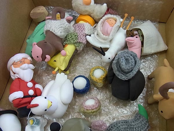 ただいま、ニット作家の新井ひでさん、人形作家のコヤナギアイコさんとコラボして、本を制作中。 「photoback」をご存じでしょうか? 写真や文章を、いくつかのテンプレートに当てはめてデータを作ると、それを本にしてくれるサイトです。今回私たちは文庫本サイズの本を作っていますが、他にも数種類、サイズが選べます。 詳しくはこちらを。 http://www.photoback.jp/ このサイトで、すでに私たちは、1冊、作品を作っています。 三人がお世話になったパン屋さんが引っ越すことになり、お礼の意味もこめて作った本。 非売品ですが、「世田谷233」には置かせてもらっているので、読むことができまーす。 タイトルは『羊のいたまち』です。 というわけで、このメンバー、この形態での本作りは、今回が二度目。 なので、要領はだいたいわかっているので、サクサクと作業が進みました……ということだったらいいんですyけどねー。 やはり、ひとつの作品を作るというのは、たいへんです! どれもかわいいです! ニット担当のひでさんは、今回のリーダーでもあります。 この小さな小さな編み物、もちろん本物です。毛糸を紡ぐところから始まり……。 背景のお部屋もひでさん手作り。ドア、開閉します。 かなり腰がつらい体勢。 私はライト担当です。 作らなきゃならないものの多さ、難しさに、ひでさん、泣きが入ったそうです。 お世話になっております。 もともと立体を作る分野の者ではないので……。 あ、でも、ソリは作りました。 撮影の後は、軽い食事。 私の相方が作って持たせてくれました。 レバーペースト、チリビーンズ、小豆のフムスなどなど。 チリビーンズには、レンズ豆を使いました。 「フムス」とは、ひよこ豆のペーストのこと。今回はひよこ豆ではなく、小豆で作ったとのことでした。 これをバゲットに塗って、ワインといっしょにいただきました。 今回バゲットを買ったのは「レ・サンク・サンス」。 青いお店で、フランス国旗が目印です。 http://les5sens.jp/ さて、どんな本ができるでしょうか? 楽しみです! PR 未来のピザ屋さんのお話。絵は伊藤正道さんです。 ピザ大好きのザット博士は、ピザ製造&宅配ロボット「ピザット」を開発し、ピザ屋さんを開きます。ピザはロボットのお腹の中で作られます。作りながら配達するので、まさに焼きたてのピザが届けるお店。 クリスマスに、女の子からプレゼントをもらったピザット6号。すると、6号のコンピュータ頭脳に異変が……。 クリスマスのお話ですが、よかったらご覧ください。 明日(9日)、無料公開予定です。 https://www.so-net.ne.jp/storygate/ 今日は「世田谷文学館」のイベントに、豆本のワークショップと販売で参加してきました。