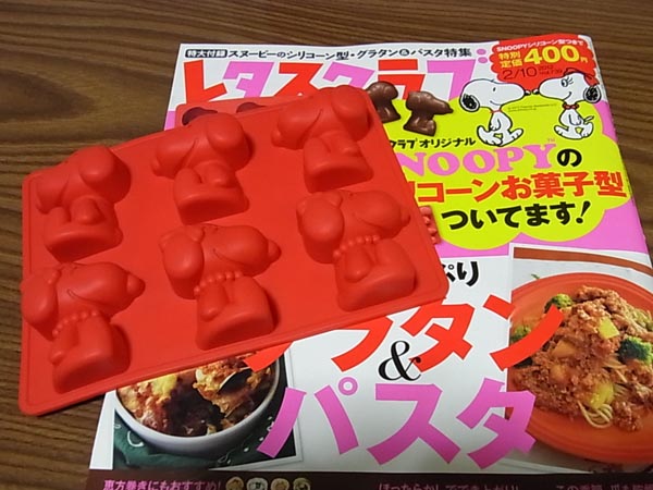 今発売中の「レタスクラブ」に、スヌーピーのシリコン型が付録になっていたので、買いました。これで400円って、すごくお得じゃないですか?